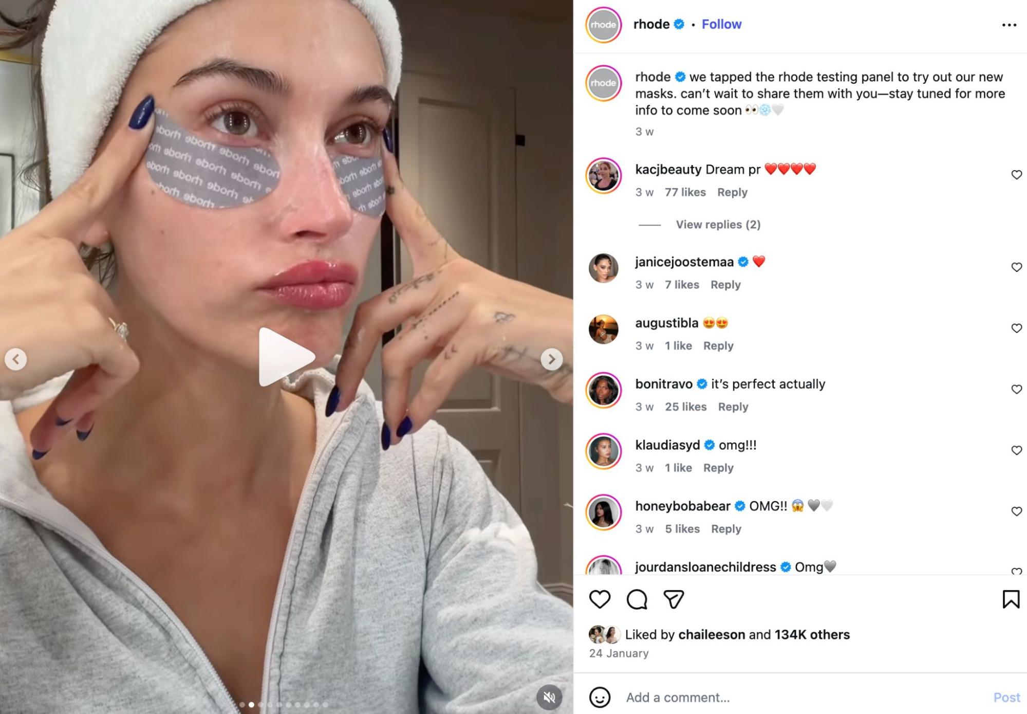 This is where the real scale happens. Rhode's influencer strategy kicks off each launch, but the organic fan content is what sustains it.