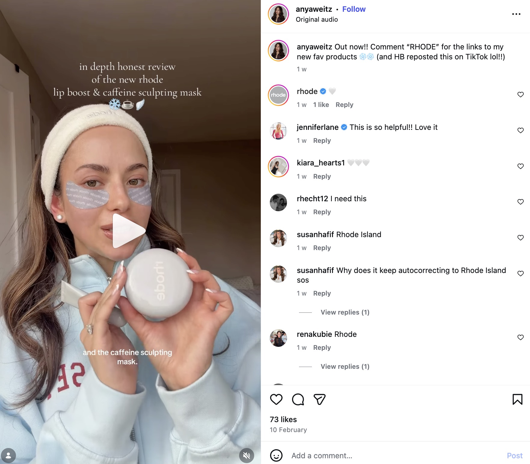 The blue box gave every single post a common visual thread. So when someone scrolling Instagram saw one post with a giant blue Rhode box, then another, then another from a completely different creator, it started to register. Rhode is here. That repetition across dozens of different accounts created a kind of awareness that no single post could have achieved on its own.
